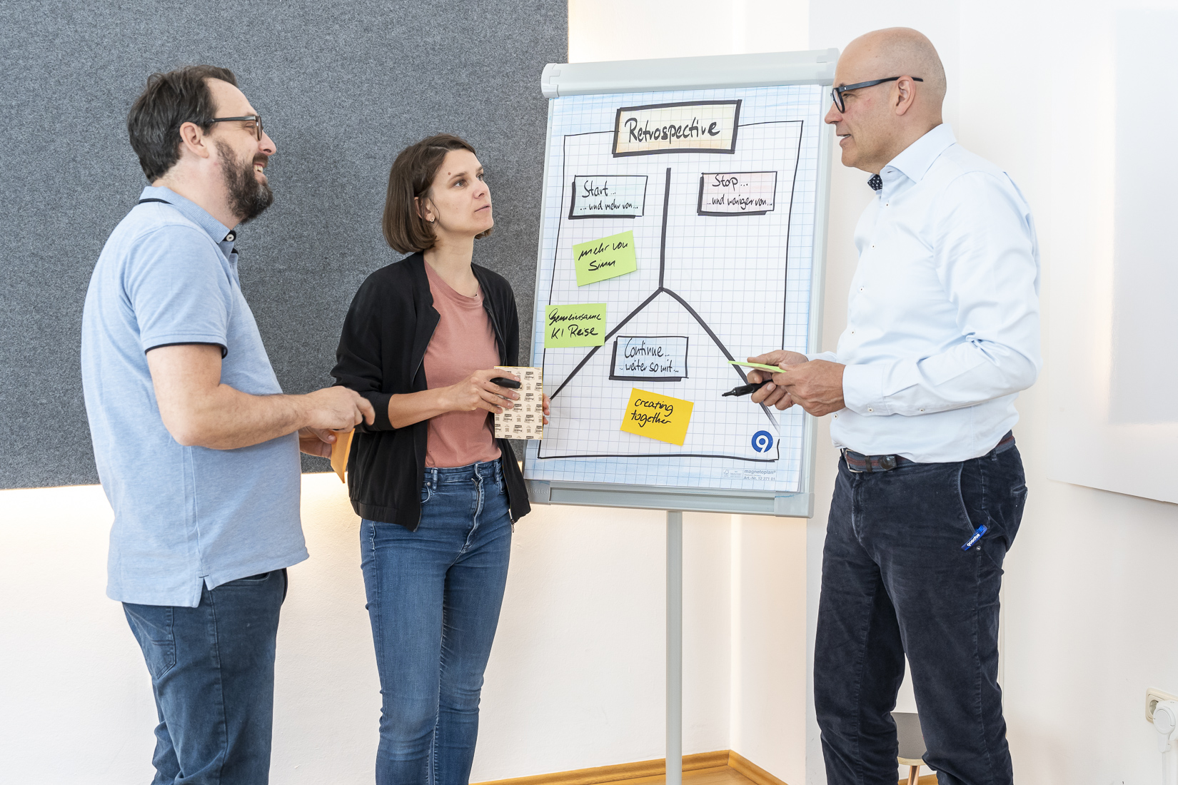 Fortschritte werden sichtbar: mehr Klarheit, Vertrauen, Verantwortung. In Reviews sichern wir Learnings, spiegeln mit dem Top-Management und integrieren strategische Entwicklungen (z. B. neue Werte, Strukturen).